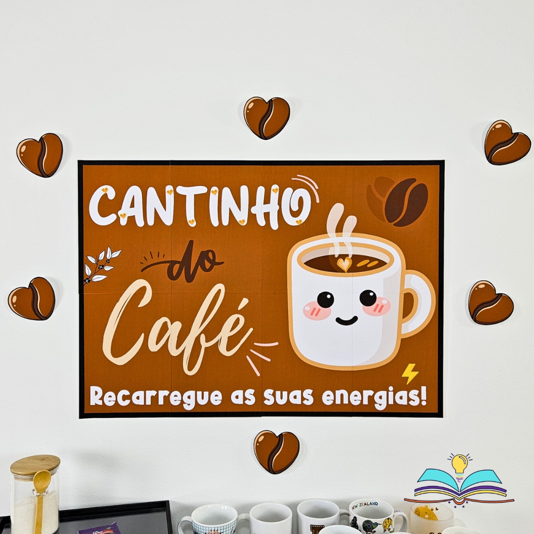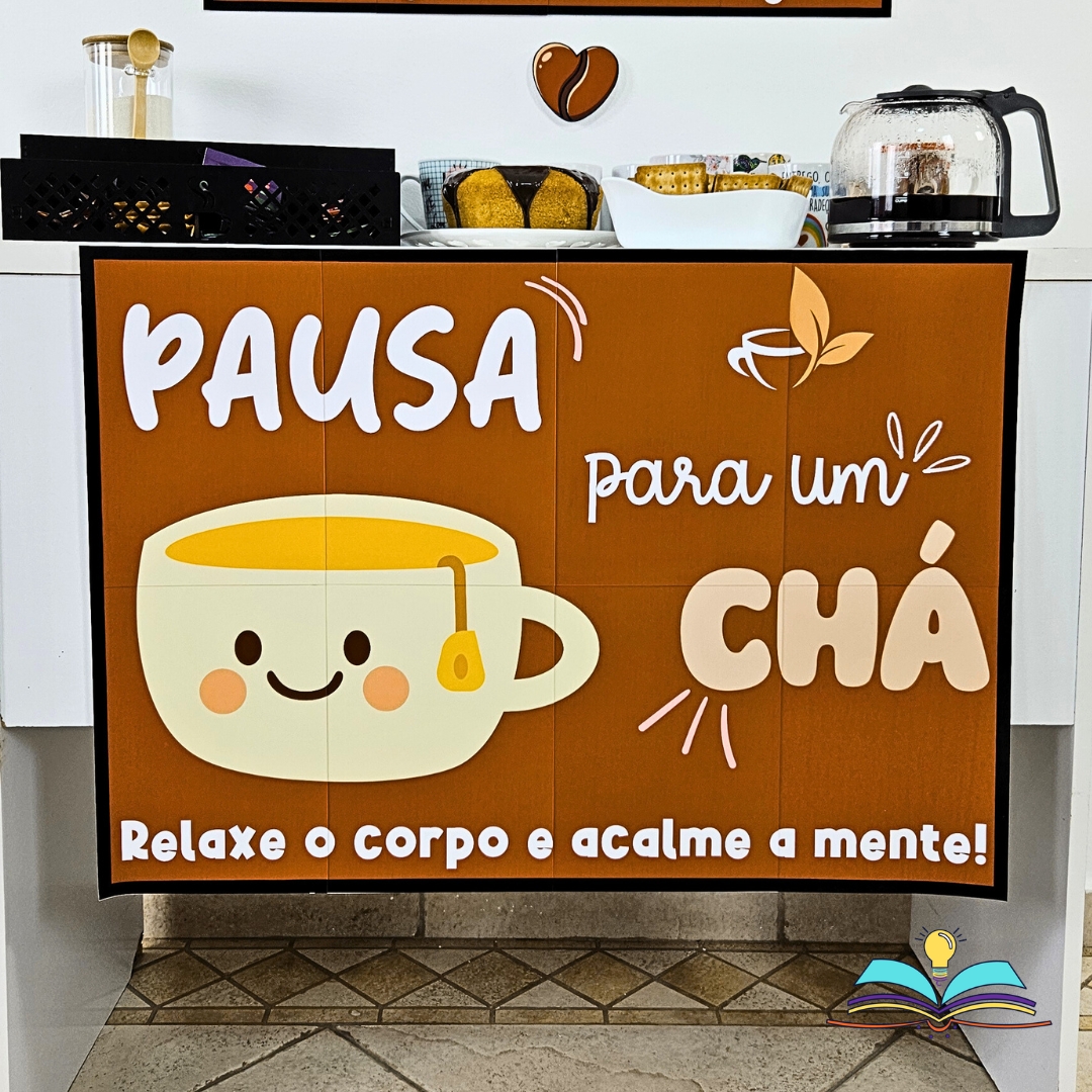 🔸Painel a respeito do cantinho do café e chá. Perfeito para criar um espaço onde seja possível pausar, conectar ideias e tornar seu ambiente mais acolhedor hoje.