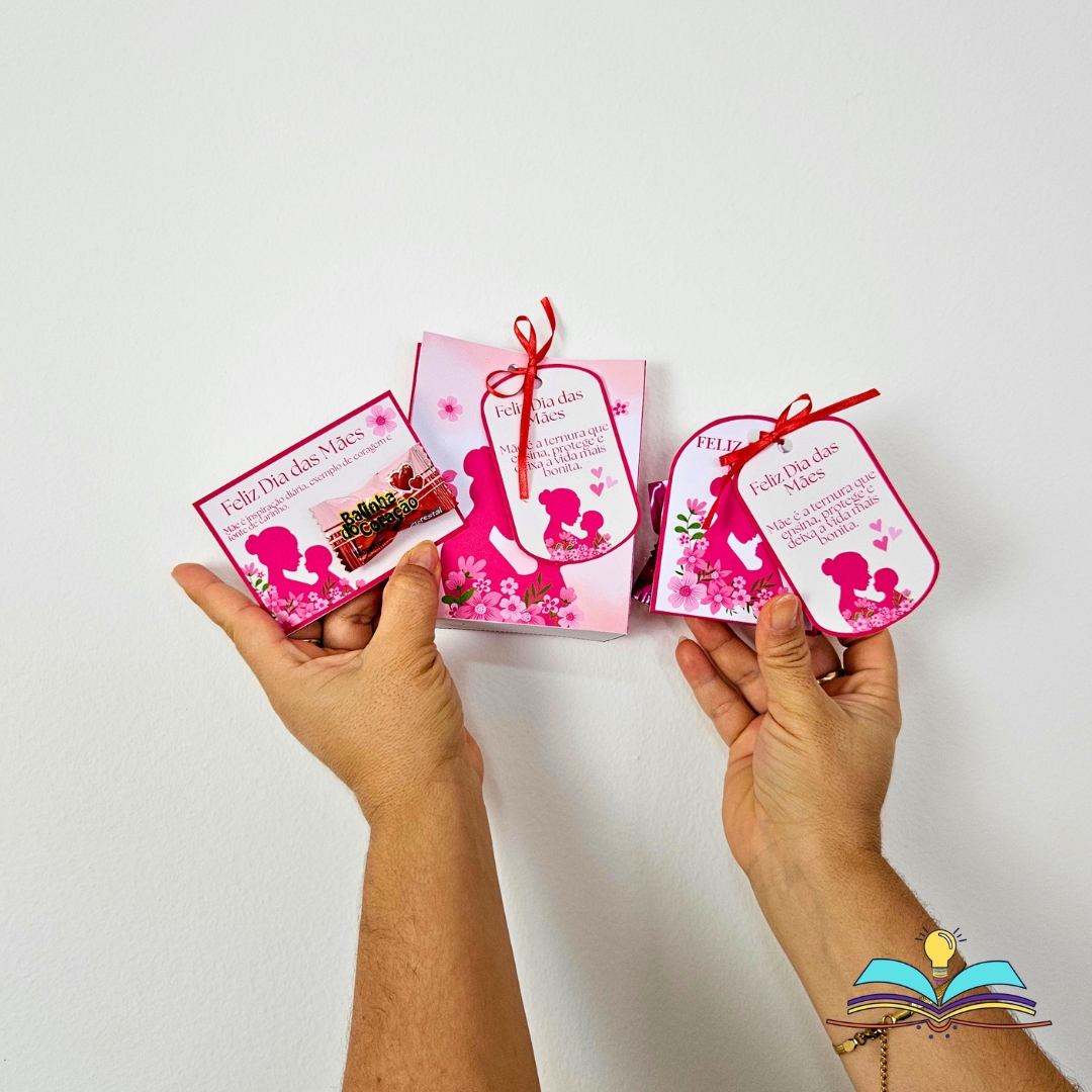 🔸Elementos decorativos para uma cesta com lembrancinhas do tema Dia das Mães.
