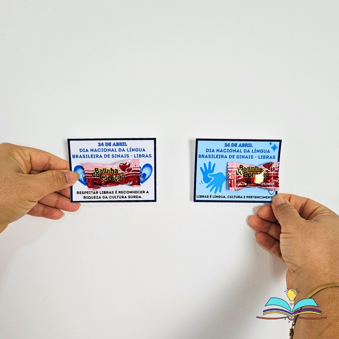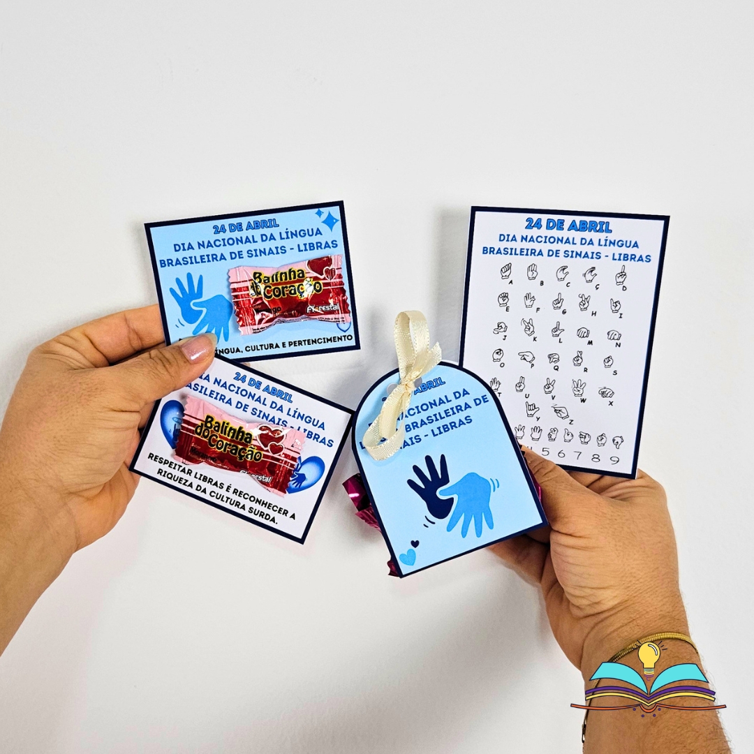 🔸Elementos decorativos para uma cesta com lembrancinhas do tema Dia Nacional da Libras.