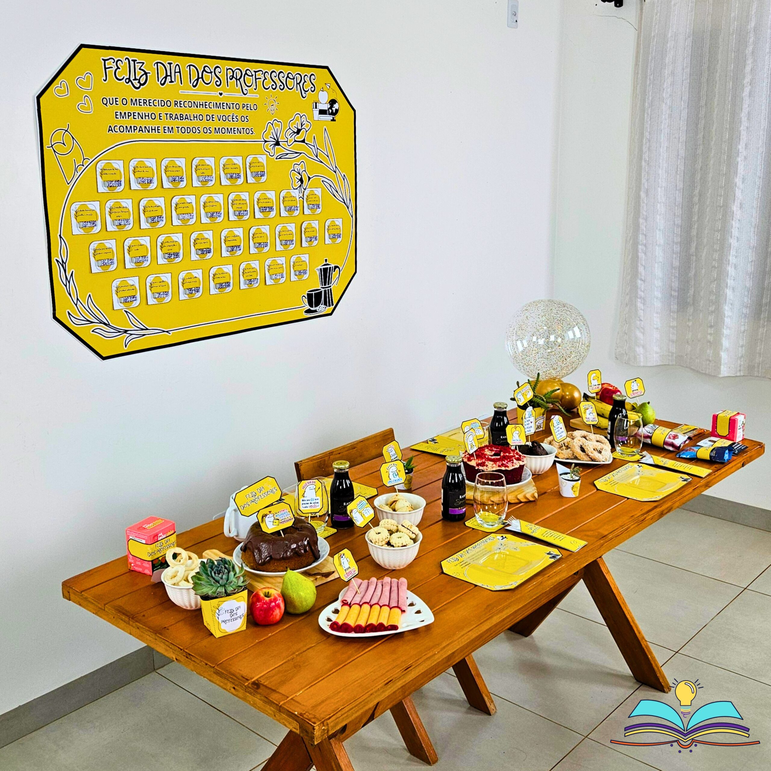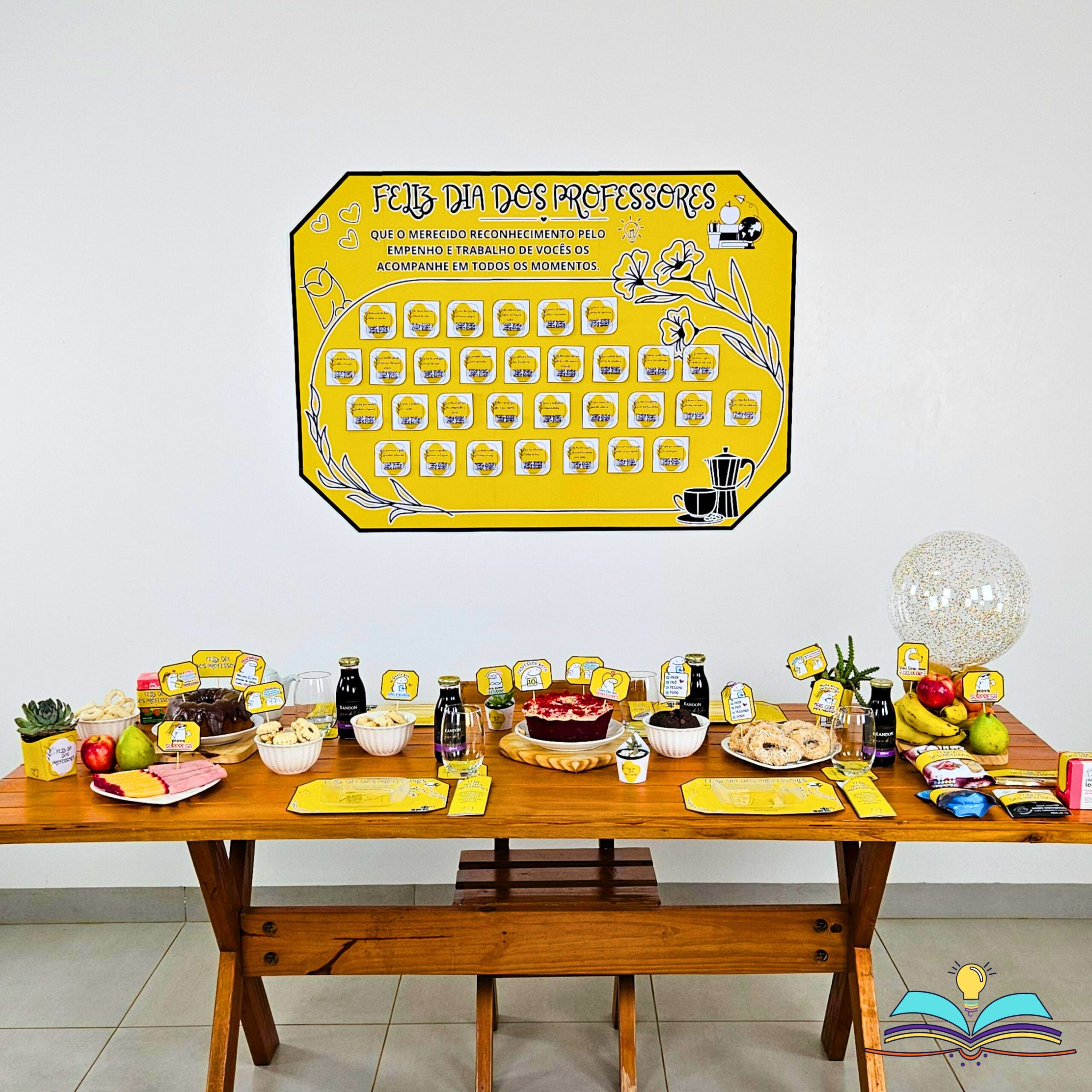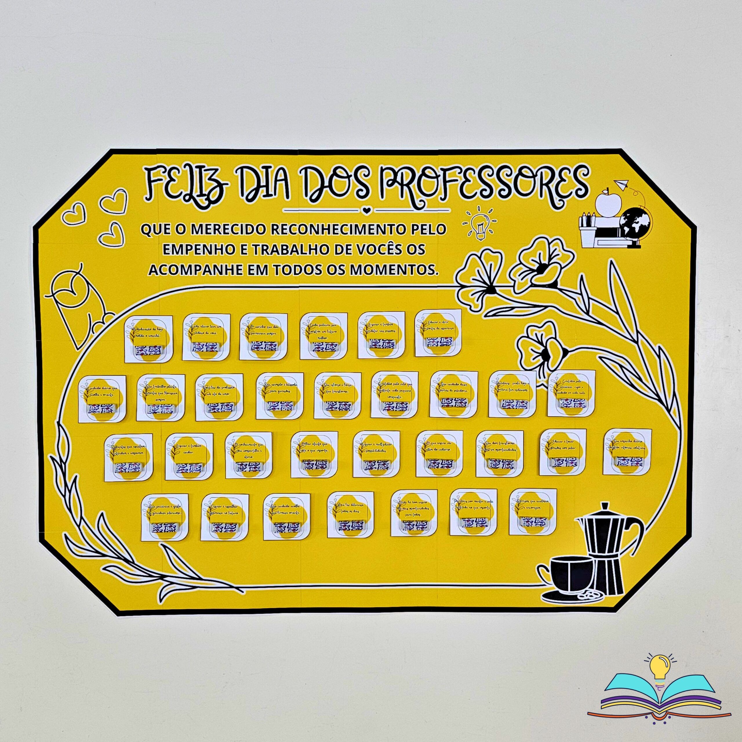 🔸Painel do Dia dos Professores. Data comemorada no dia 15 de outubro com complementos para realizar um café ou chá em homenagem aos profissionais.