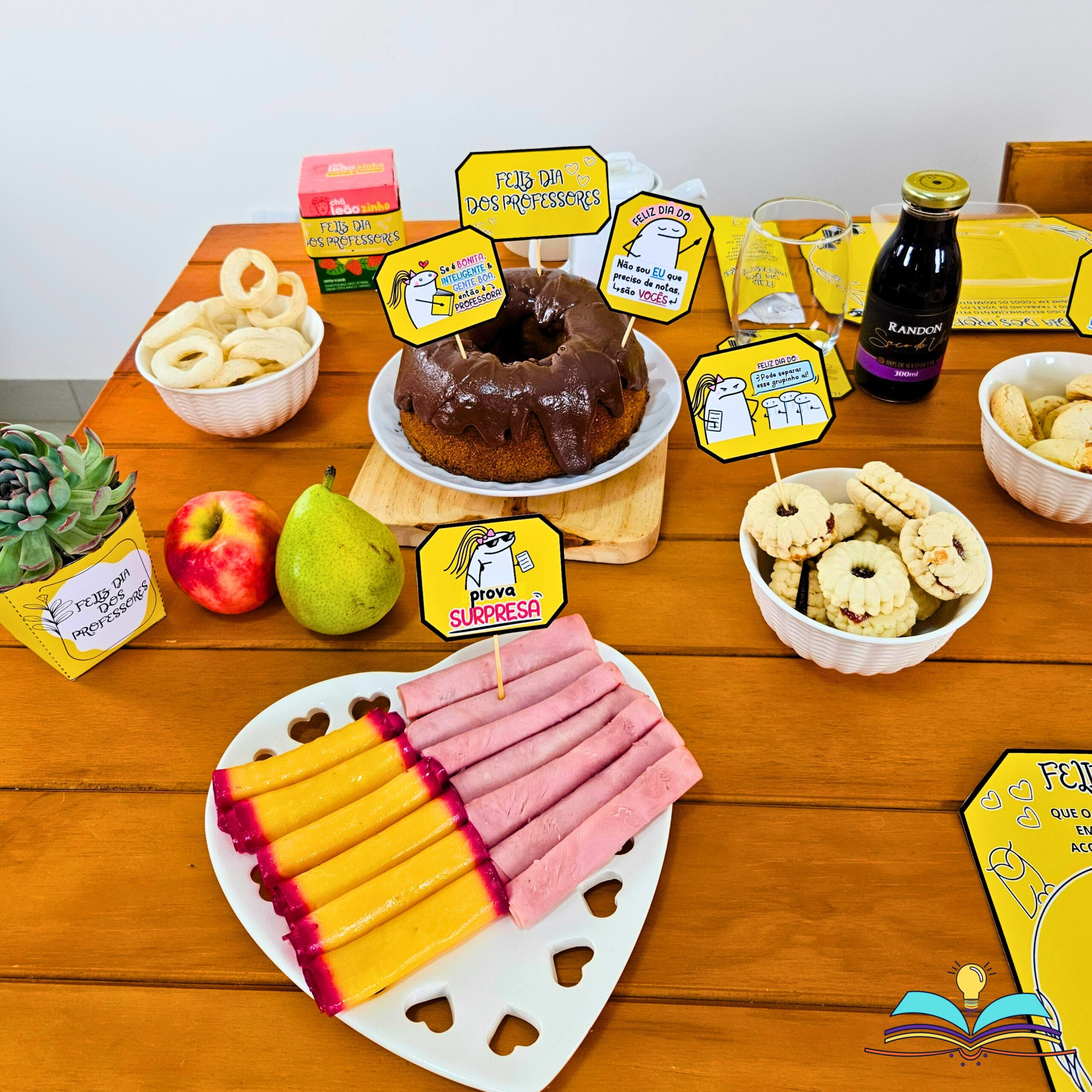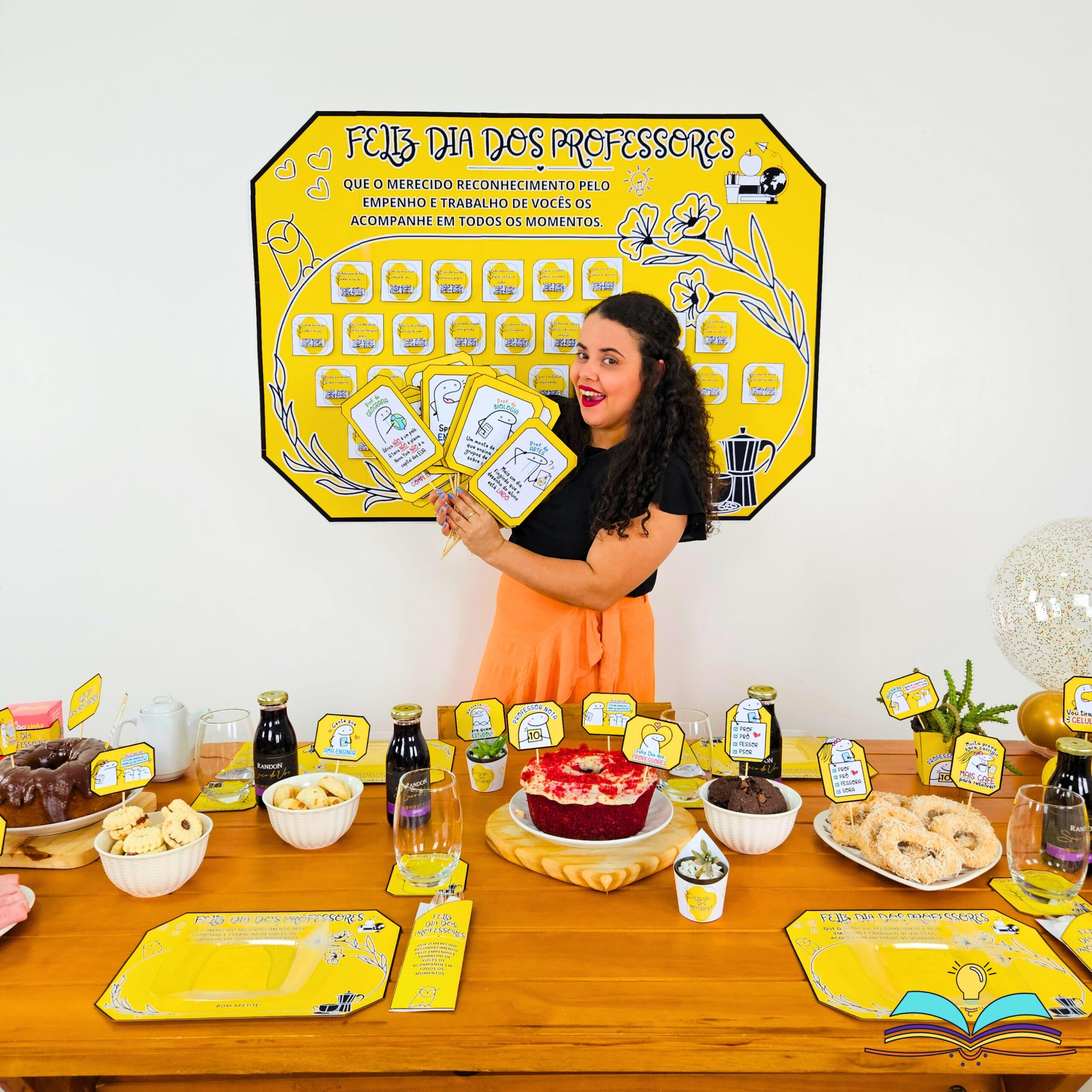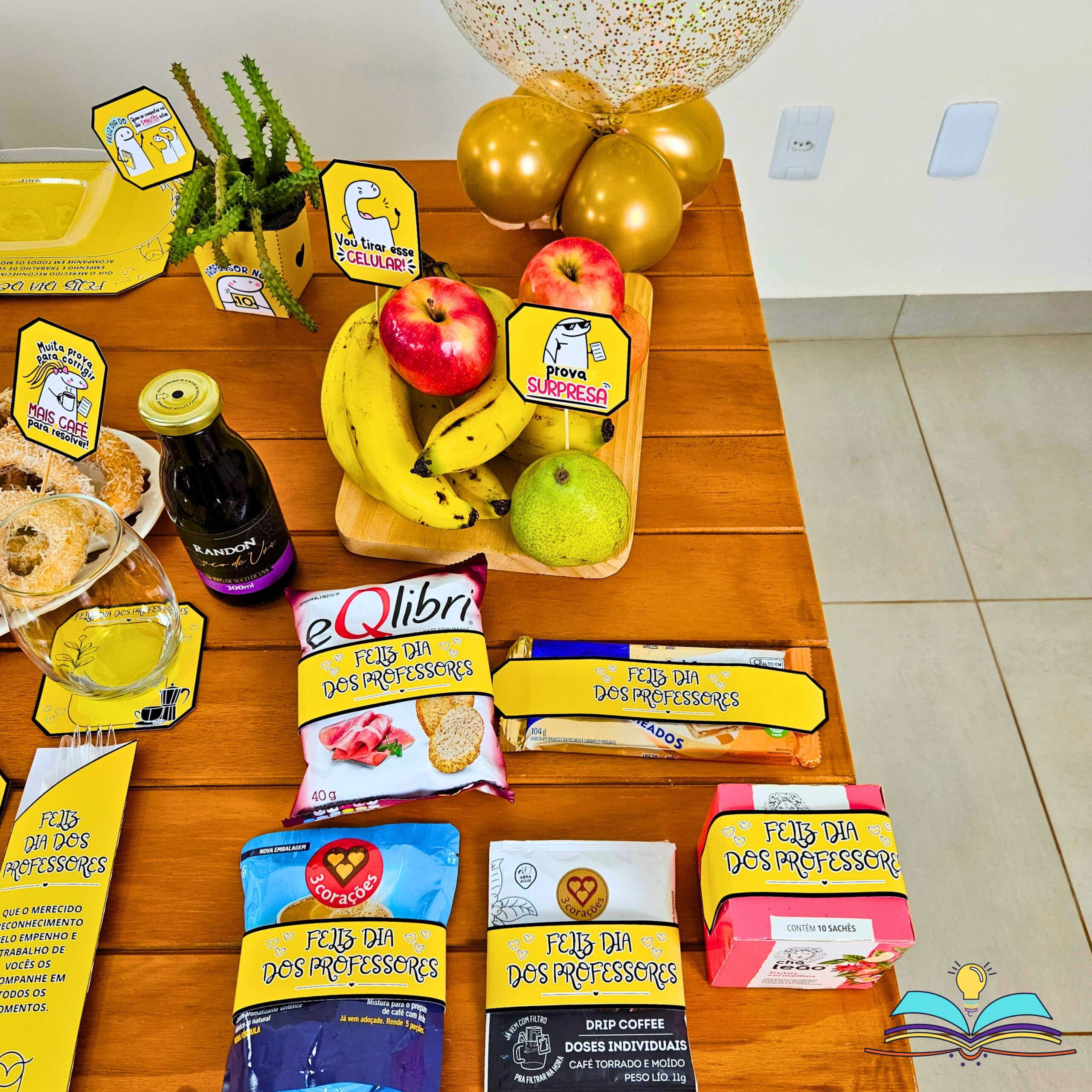 🔸Painel do Dia dos Professores. Data comemorada no dia 15 de outubro com complementos para realizar um café ou chá em homenagem aos profissionais.
